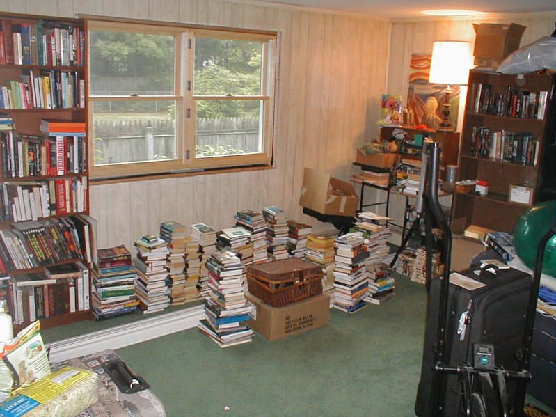 The wife and I are moving at the end of the year, and we are going through our possessions and eliminating things we don't want or need. Our book collection is very large - in the attached picture, the books on the floor represent our discarded material, and I still have 30-40 boxes and crates of books stored downstairs - and we plan on donating the volumes that are in good condition to libraries and shelters, particularly areas down south stricken by the recent storms.