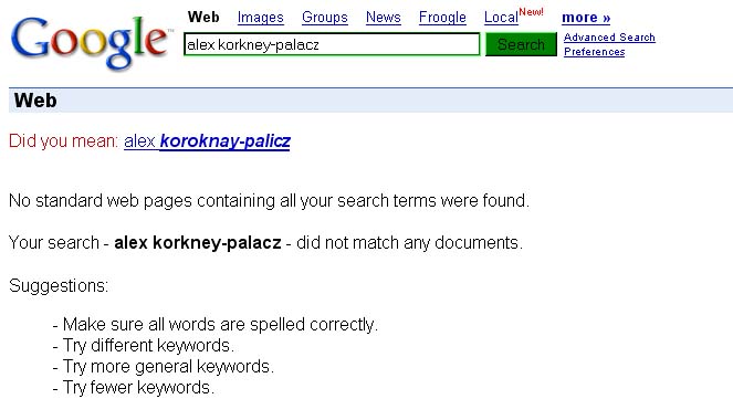 A search with a misspelling suggests my correct name and gives links to some of my papers. So I guess I'm cool too.
