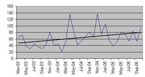 It is a trendline taking into account the available data from March '03 to Oct '05. What is wrong with that?