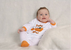 She's awesome. She can hold her head up and turn it, and she tries to talk whenever you say her name. Though her "talking" is more like monkey noises.