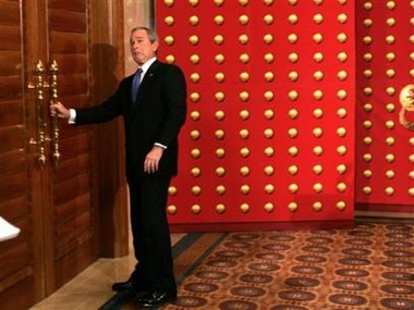 BEIJING (Reuters) - Irked by a reporter who told him he seemed to be "off his game" at a Beijing public appearance, President George W. Bush sought to make a hasty exit from a news conference but was thwarted by locked doors.