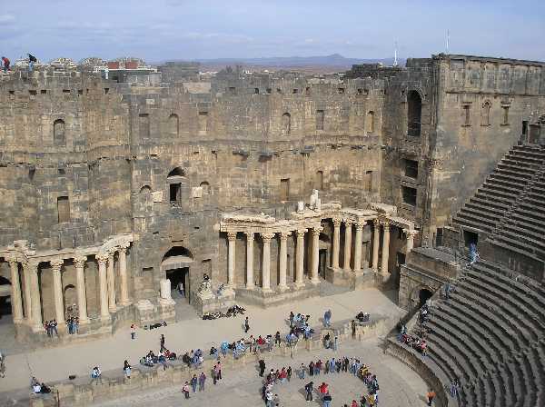 And here are photos of ancient theatre later turned into a citadel. The crowd You can see there are scouts. In Syria the only scouts are christian ones. I and my friend ran across some very nice christian kids of Homs there. They gave us food and drink and gifts (I got a bracelet from one of the girls, a photo of one of the boys and kind of a thing You attach keys to from another buy; my friend got two pictures of saints and a bracelet). They sang for us and danced, and told us we're beautiful and asked if they can be our sisters and so on.