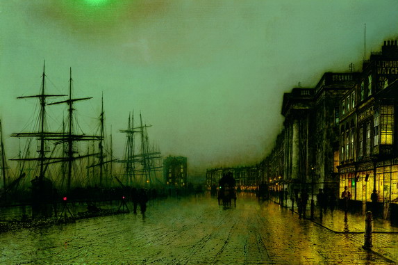 There's a Victorian artist called Atkinson Grimshaw (suitably 'Oop North' sounding name) whose paintings remind me of London, Manchester and Melbourne, probably because he painted dockside scenes and winter scenes, with Victorian merchants' buildings and wharves in them.