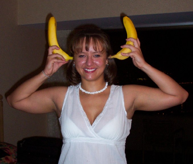 Then ya eat one banana all alone except of course you and the banana and everyone says ya peel the skin back and munch away