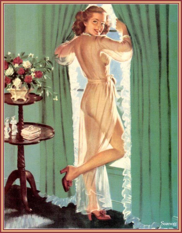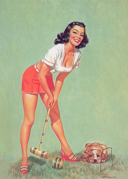 My favorite one so far is the lady with the long red dress and stockings with the dog, the one by Armitage. The waitress with the short shorts also looks delicious.
