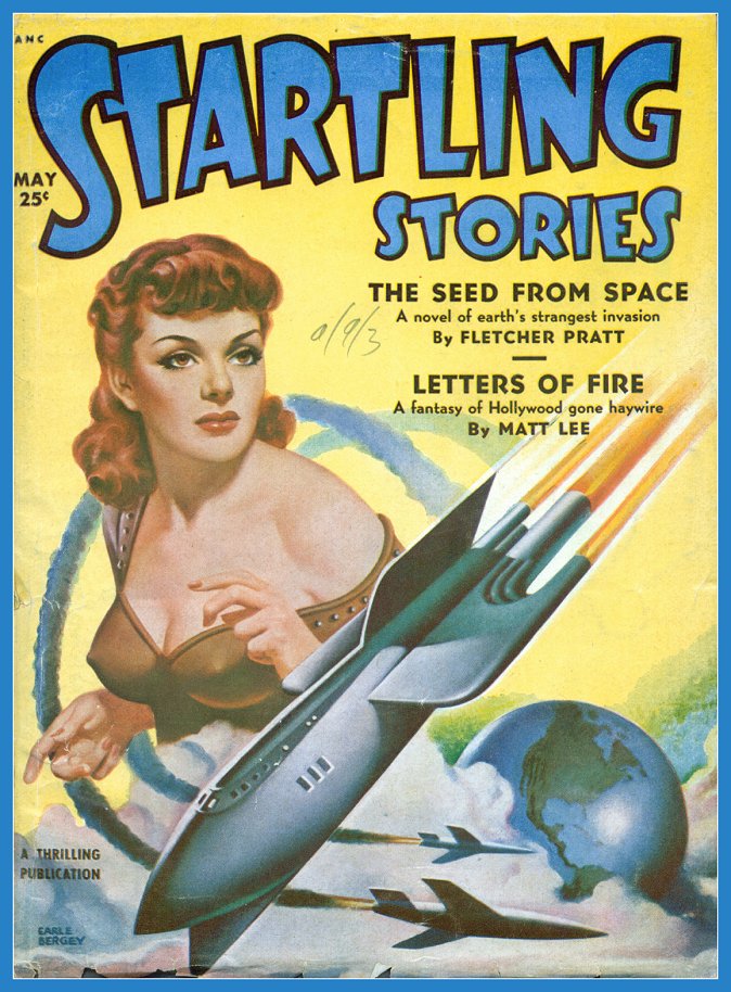 He was contracted to do covers for several "exciting stories" magazines, among them Startling Stories, for which that image was used. It was nicely cleaned up by the scanner before posting to the group I mentioned earlier.