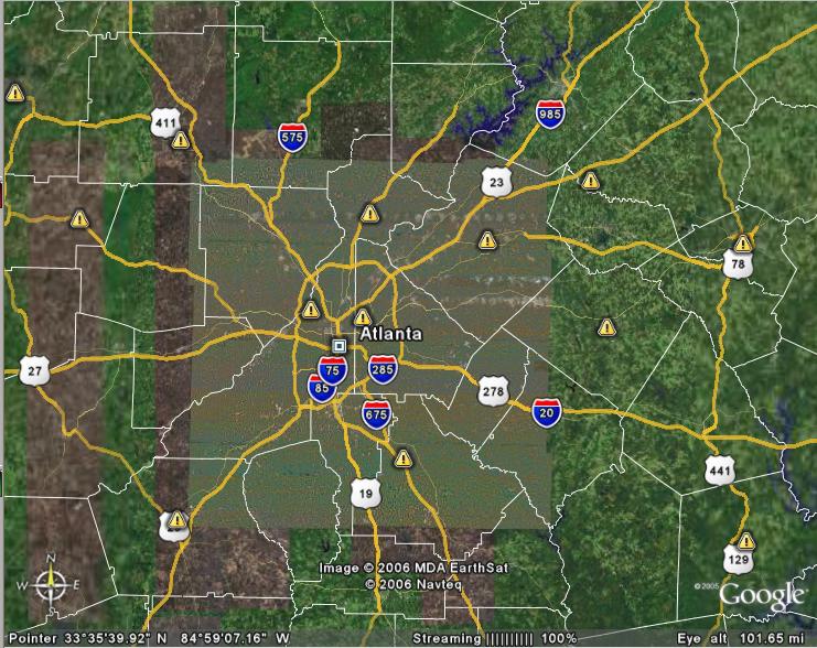 Here's Knoxville on the same scale as LA (100 miles up).