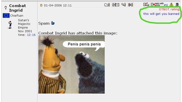 We are glad to announce that we have installed an automated mechanism to reduce the amount of spam and improve the content of the OT. The changes have been made after serious research in sociological paterns of behaviour, especially C. Garland Dulan and Elizabeth S. Paul's writings (this is what you get when one of the Owners gets into higher levels of education)