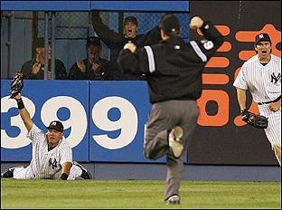 Sweet, sweet win last night. Melky with the game-saving catch, Wang pitched well (almost undone by shoddy D earlier in the game, but held it together), Bernie somehow hit a HR batting left handed (!) and it was the Sox, not the Yanks, who made a poor defensive play that resulted in a loss.