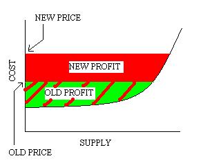 profitability increases as price increases, even if the price increase is due entirely to high cost of supplying additional demand