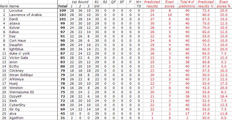 • My Group placings are my problem. Lost out big on the leaders for getting England Sweden and Argentina Netherlands the wrong way around.