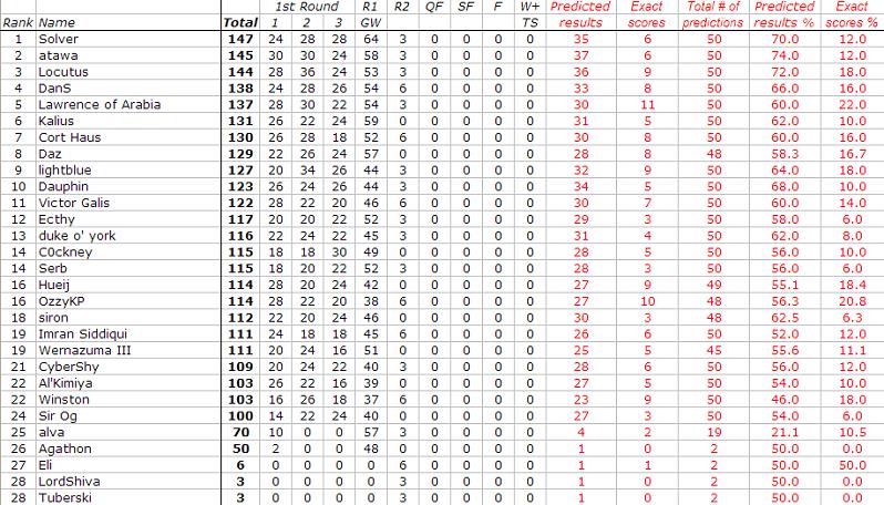 Re: World Cup prediction thread - Knockout Phase