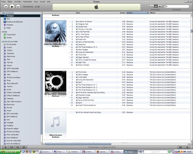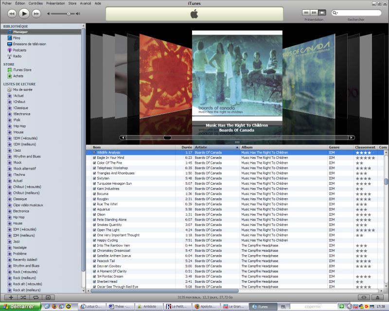 I downloaded the new iTunes. The album views are pretty cool, even though one of them is a Windows Media Player rip-off. Unfortunately, I don't have that many album art. If you have an iTunes account, iTunes is supposed to get them for you, but it doesn't seem to work very well for now.Let us be lazy in everything, except in loving and drinking, except in being lazy – Lessing