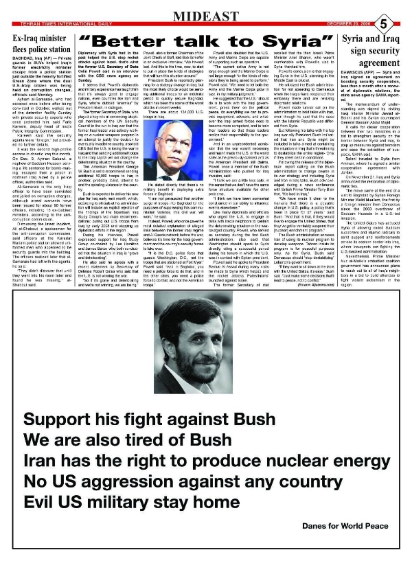 According to spokesman Jan Egesborg of Surrend, it was a time-consuming process to get the ad published in Tehran Times. "We got the ad through the censorship by pretending that it was a critique of President Bush - which it is, too - but the point is to ridicule the Iranian President, who represents an extremist Islamic ideology, denies the Holocaust, and suppresses freedom movements in Iran", says Jan Egesborg.