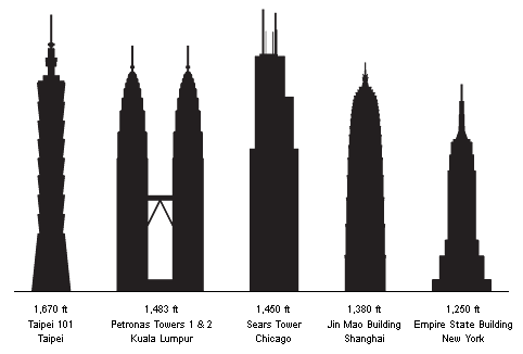You do realize that the petronas towers were less massive and had a lower heighest ceiling than the World trade center built decades earlier. How can the petronas towers be an example of something even remotely close to being at the limits of what human kind could achieve? The petronas towers gained temporary recognition because in place of the antennae that are found on other skyscrapers a decision was made to install thin uninabitable decorative spires with the understanding that while current skyscraper height measurements exclude functional antennaes they include decorative structural elements like thin spires.