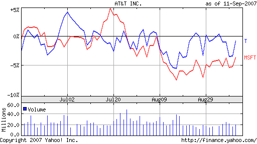 Look at the following comparison of AT&T and Mircrosoft shares. Notice the correlation.