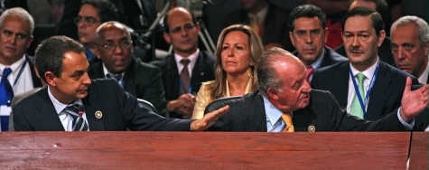 "Why don't you just shut up!" yelled the King (presumably in Spanish) after Chavez and Spanish PM Zapatero got into a heated argument following Chavez' earlier labelling of Zapatero's predecessor as 'Fascist', and accusing Spanish corporations of having backed an attempted 2002 coup in Venezuela.