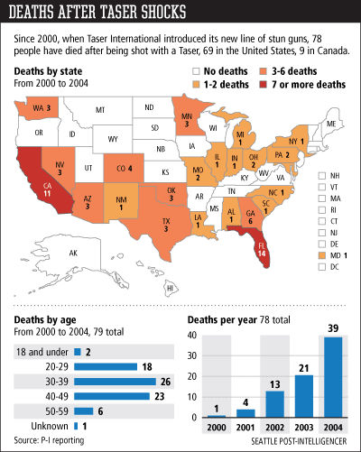 Some US cops seem to think a tazer is a tool to be used in every situation that doesn't fit ideal test conditions.