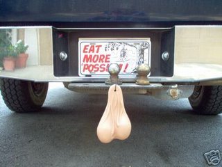 He says he finds it shocking that the state should be telling people that have the metallic bull testicles that they're now going to have demerit points on their licenses for it.