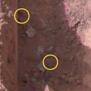 Lastly, notice the surrounding chunks of whatever are slightly changed after the ice-chunks have melted. Here is another picture. Doesn't that seem a little odd? Unless this dirt is very fine and shifted when the ice melted, i'm not sure. I noticed the surface is smoother, probably evidence for ice melt, rather than against it.