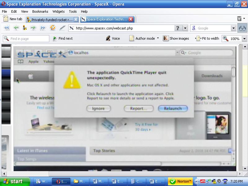 As some of you might remember, I've mentioned that there have been no successful privately-funded orbital rocket developments. All orbital launch vehicles to date has been government funded. SpaceX, in Los Angeles, is trying to become the first privately-funded success story with the launch of the Falcon 1. This is SpaceX's third attempt. The first attempt ended in the Pacific ocean not far from the pad. The second attempt ended in the second-stage burn not making orbital velocity.