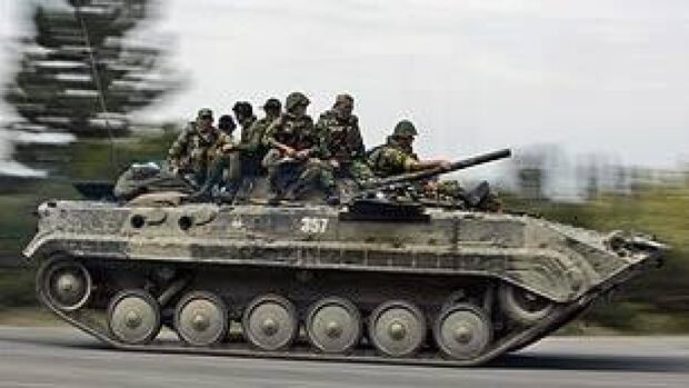 Russian soldiers take prisoners in Georgia port.