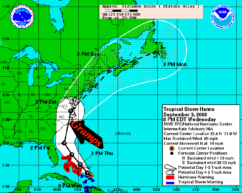 Looks like Florida is going to get slammed by Ike. It's a Category 4 now , is predicted to drop to a 3 but then pick up again to a 4 before it hits Florida.