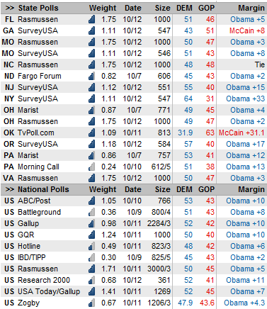 Electoral vote is declaring it for Obama, which is why they've got the blue outline saying Weak Obama! Based on one poll, which is a massive outlier along with everythign else.