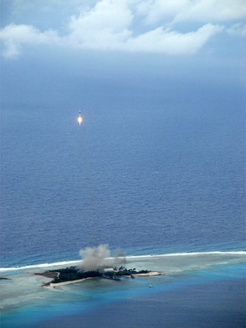 Some awesome aerial pictures of the launch, courtesy of the US Air Force (range service providers). You know you're out in the middle of nowhere Pacific Ocean when...
