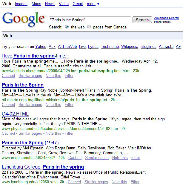 And it optimizes your search because words like "in" and "the" and "and" are completely useless outside of a phrase in a web query. Every site seems to have those kind of words, they don't narrow down your search at all.