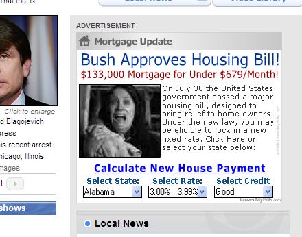 Can anyone explain to me how this picture I randomly came across makes any sense within the context of the ad? I don't have a video capture program, but suffice it to say that the animated .gif did indeed show a woman cradling a baby in her arms and screaming in horror as if Freddy Kreuger was about to cut her into four easy slices. Apt illustration, inadvertent glitch, or some disgruntled techie having a bit of fun?