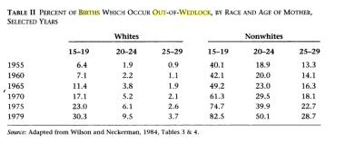 The Great Society programs came online in the mid-60s (LBJ). The link you provided compared out of wedlock birth rates between 1980 and 2003.