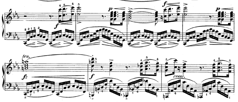 A strange place that I have difficulty is at the very end. For a reason, my left hand has difficulty with the descending C#minor arpeggios; the spacing between E and G# is a bigger span than my 5th and 4th fingers on the LH are used to, and it causes me to miss notes. The reason: I just don't play descending arpeggios in C#minor with the left hand often enough!