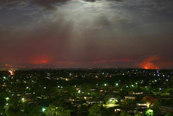 This was taken last saturday night looking out over the suburbs of Melbourne towards the fires. I didn't take it, but saw it in the local paper.