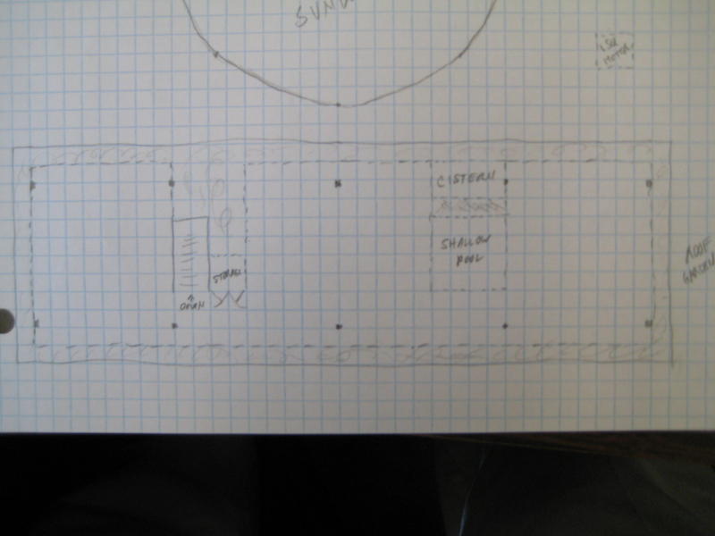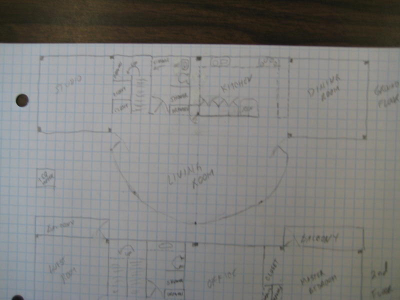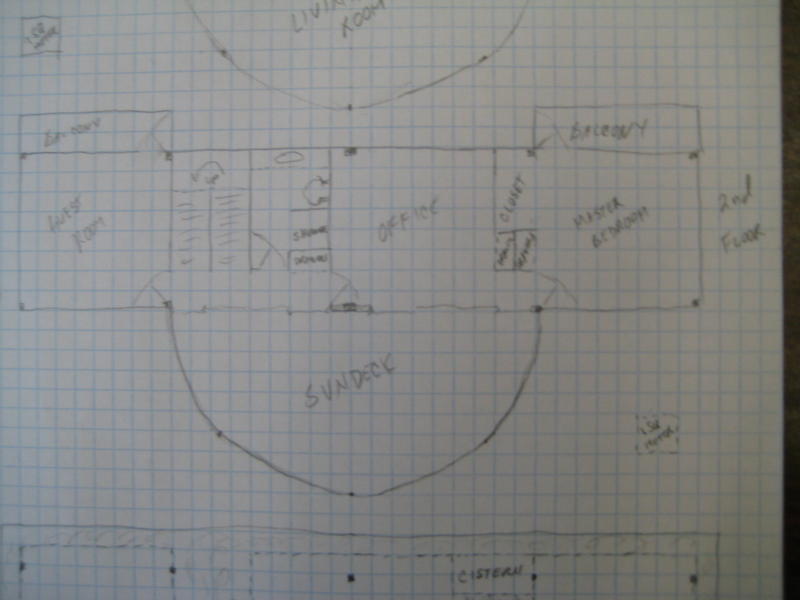 I've redrawn the floorplans. On the first floor, I've moved Post #3 one meter to the ocean side and have eliminated the bookcases. I also moved the refrigerator 1 meter to the right, switched the pantries from an up-down axis to a left-right axis, and added somemore counter space in the kitchen.