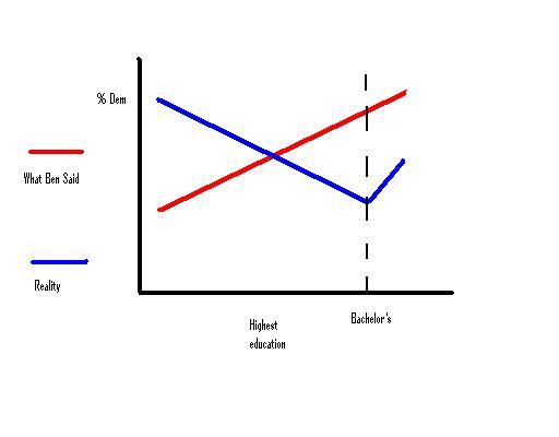 OK, he should have said "The longer one stays in post secondary education the more likely to vote Dem."