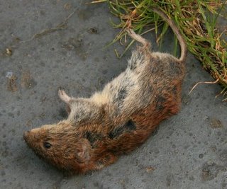 Still, I wasn't sure whether to kill the breed or not. Then I saw the brave mother vole come out of the bushes again, at the rescue of her babies. Under my very eyes - she mustered me and I mustered her - she started to drag out a few whimpering hairless bundles one by one to the bushes. She had no protection whatsoever, knowing I was standing there - pure bravery!