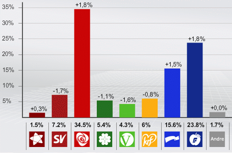 everything left of the V-party is the current government, which needs ~48% to form a majority government