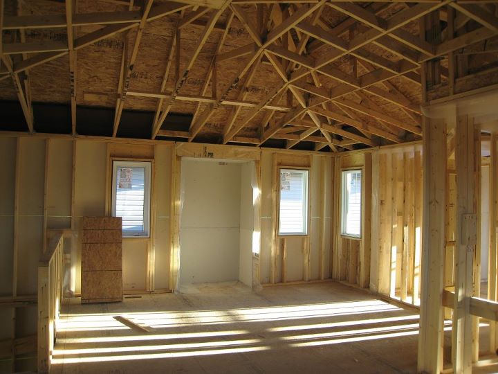 Week 8.5: Master bedroom is coming along. The framing demonstrates the vault it'll have.