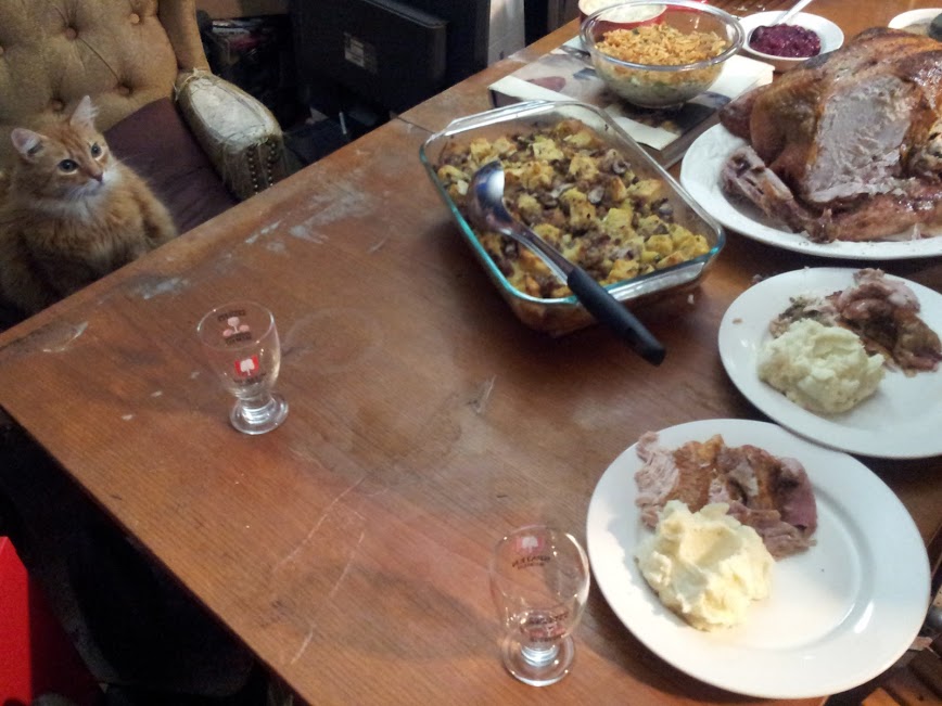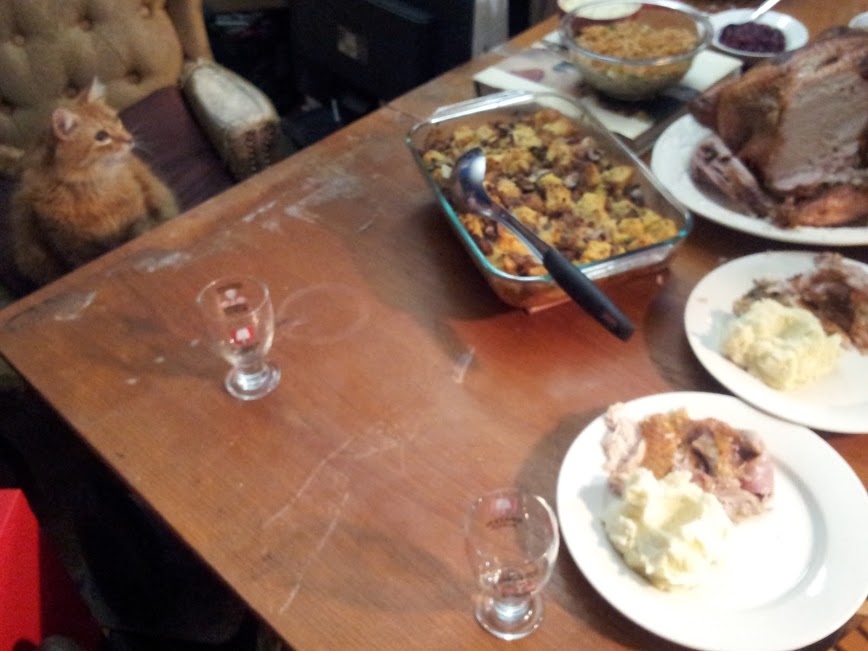 About a year and a half ago we rescued a Pembroke Welsh Corgi from a pretty bad situation - he was afraid of everything that moved and everything that didn't, had allergies of unknown cause so bad he had massive amounts of hair missing from his eyes and nose area, and he was just a nervous wreck. Vlady started hanging out with Cody, acting as a sort of security blanket. Cody had never met cats before and he was a bit nervous with the other two but they pretty much ignored each other. Now Cody runs around the dog park and herds everything, including Dobermanns, Pits, Great Danes, Ridgebacks. If it's on four legs, it's gonna get herded.