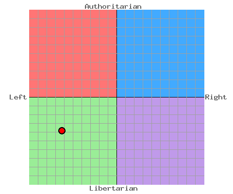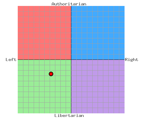 Quite a radical swing left from last time I did this. I do have an issue with some questions though. A significant advantage of a one-party state is that it avoids all the arguments that delay progress in a democratic political system. Well yes that is an advantage, but answering agree doesn't mean I actually want a one party state.