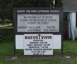 Did no one at the church notice this could be taken more than one way, and that one of those ways promotes a very, uh, Catholic point of view? Perhaps they did, because the sign recently changed to: