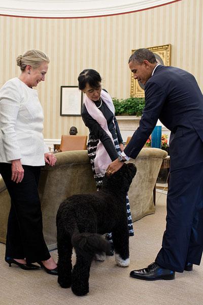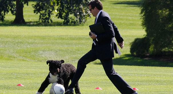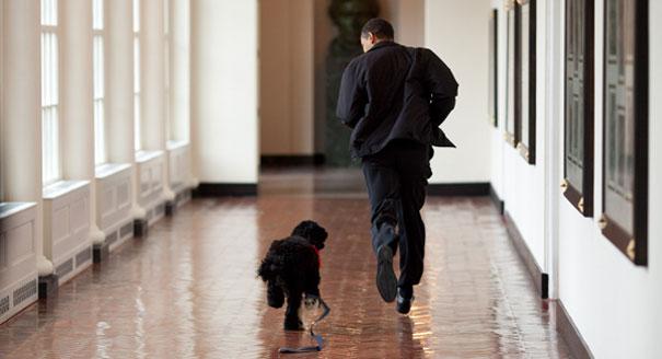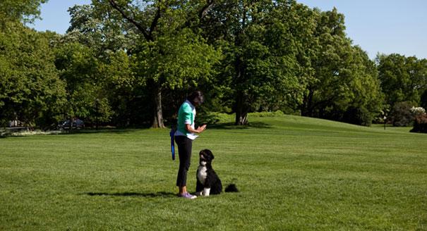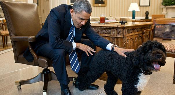Obama gives Bo a lesson on politics.