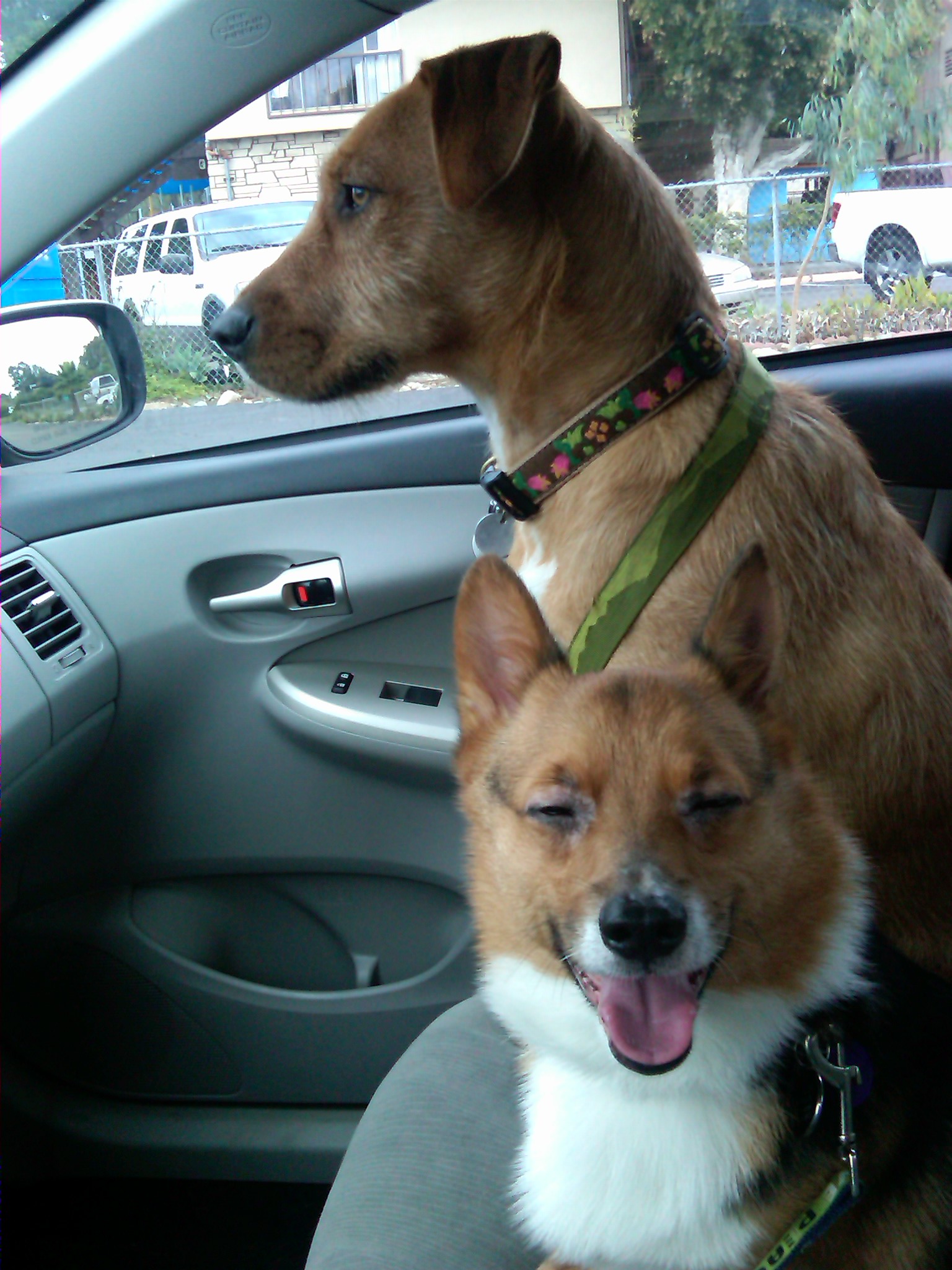 Pretty bad case, so it's iffy, but he meets Zoe (other dog in the pic, also a rescue mix of a black lab/German wirehair pointer mix and redbone coonhound. ****ing AWESOME dog - she's got the obsessive traits of the lab mixed with the stubborn/good ol' girl Kraut/southern traits. At first, she took on Cody like a mom with a puppy, but they've gotten more brother and sister now. When he first met Zoe, she was a near full-size puppy, about nine months. They're meeting at a dog park, and a couple of big blond labs come running up to Cody, and he doesn't know what to do with big dogs, so he starts shaking and pissing himself. Zoe tears after the two labs (each outweighed her by 30 lbs).