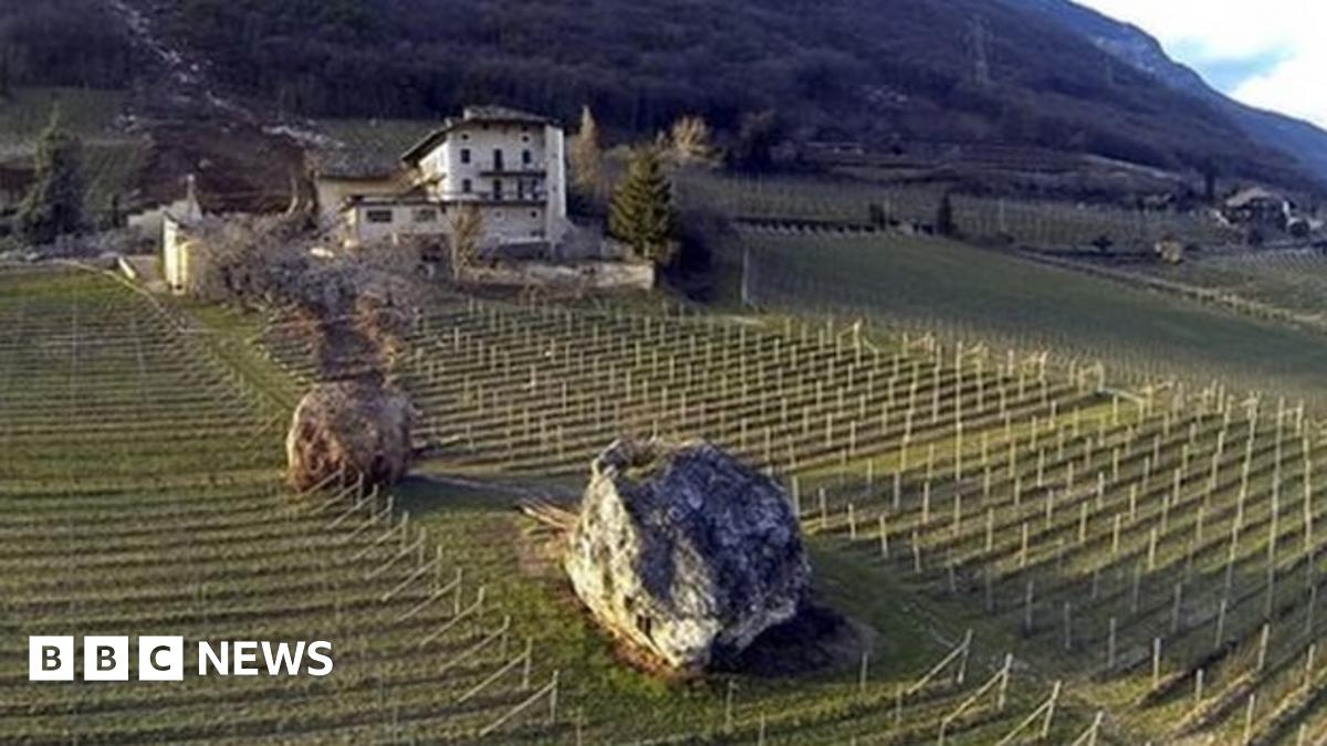 The massive rock narrowly missed a farm house, destroyed a barn, and stopped in a vineyard at the property in Ronchi di Termeno.
