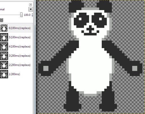 Teddy's next move is to put his paws on his hips. The last frame of what I posted last night had his arms up, so I added a 5th frame, a copy of the first, and a sixth with his arms redrawn even lower