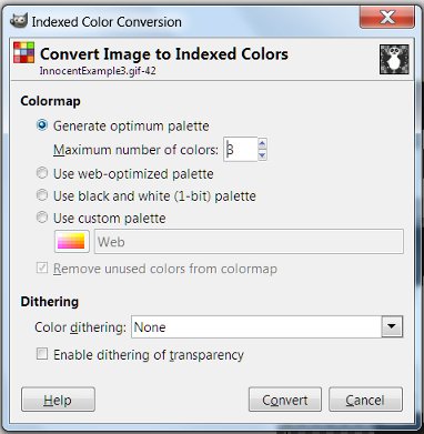 If satisfactory, set the Mode to Indexed (it's a .gif thing - and animations need to be in .gif format)
