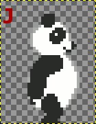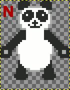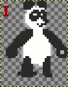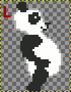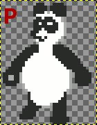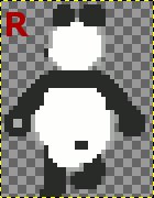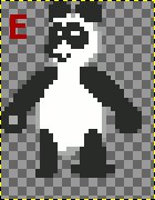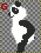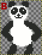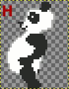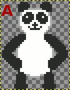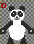 To begin the transition to the next part of the dance, Teddy extends his paws and scrunches down two pixels (to emphasize difference in height to make the leap more visible w/o making the frame borders any taller than absolutely needed - tall smilies break up line spacing, so shorter is better) in preparation to leap.