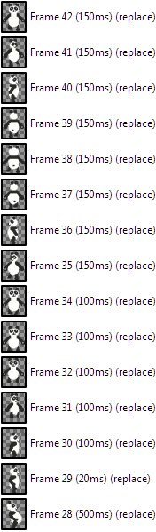 Here’s the entire arrangement of frames and timing from the Layers Menu