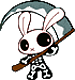 I was trying for metallic highlights and failed. The bunny's head has been modestly pinkened, which sets off the skeleton costume subtly, the background made transparent, which will look a lot better in the dark theme, and the figure slightly enlarged to fill the available space. Agreed that the differences don't stand out much.